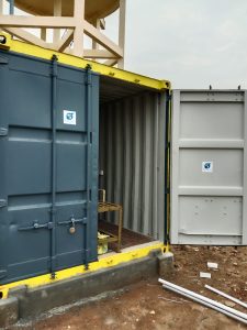 a standard shipping container. Both RO plants for pure drinking/process water and STP